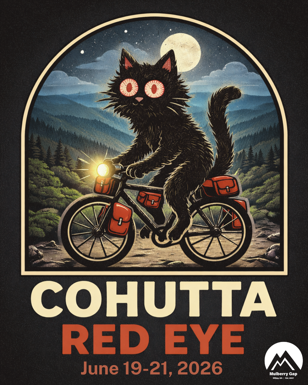 Cohutta Red Eye is a self-supported, overnight bikepacking event that celebrates equal parts grit, stubbornness, beauty, and questionable decision-making. Held on Summer Solstice weekend, riders take on a rugged loop through the Cohutta backcountry—either by day, by night, or both—earning their finish under headlamp glow or blazing sun.