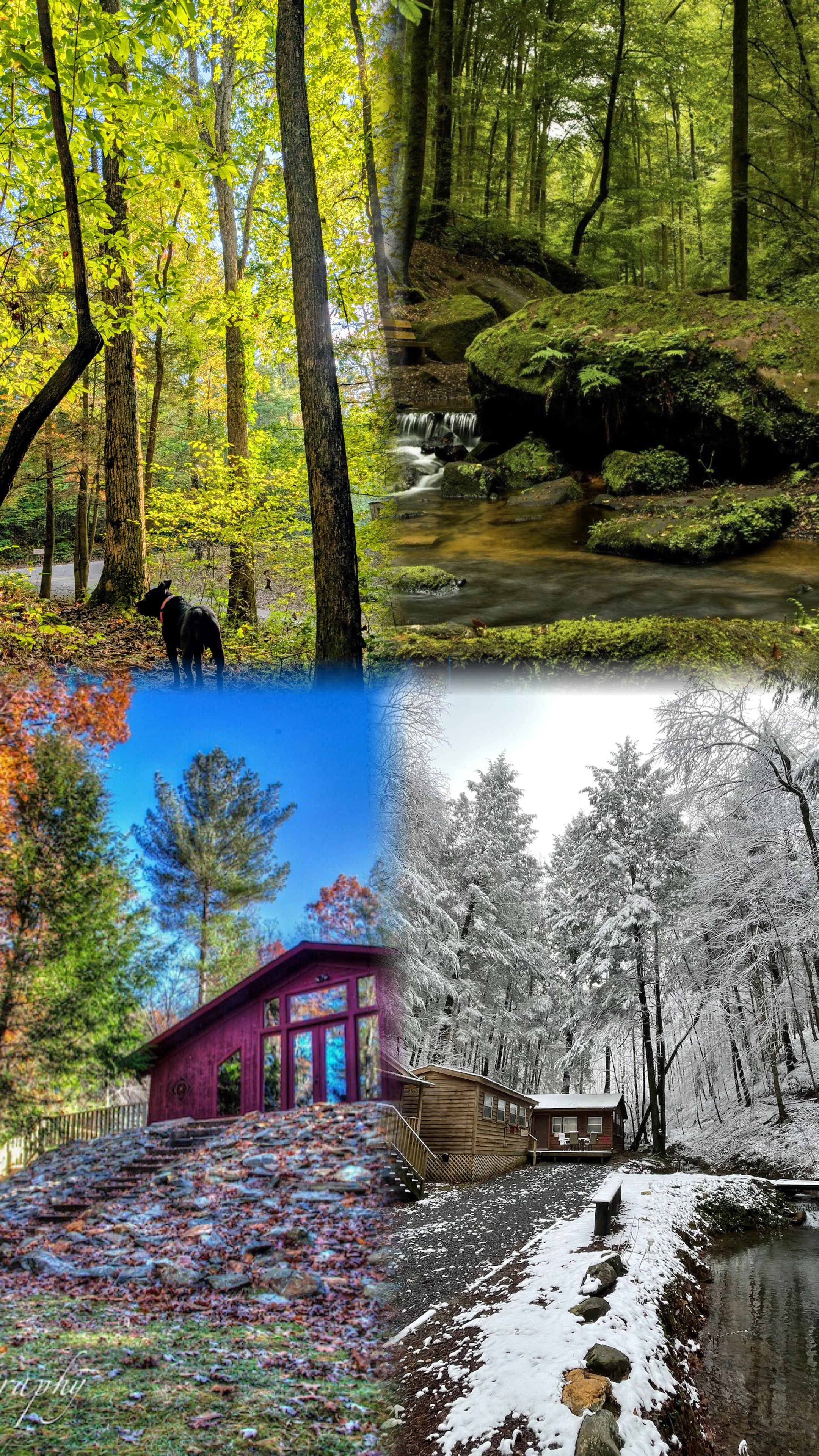 Gorgeous campus with cabins, campsites, trails, streams, ponds, campfire rings, & community spaces